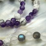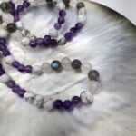 Association équilibrante, l’Améthyste apaise le mental, la Labradorite protège et absorbe les énergies négatives, le Quartz Rose ouvre le cœur à la douceur et la Howlite favorise le calme intérieur. Ensemble, elles créent une synergie idéale pour le bien-être et l’équilibre émotionnel.