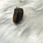 Pendentif en Œil de Tigre en forme libre un peut cubique simple. Longueur total env. 2.5 cm