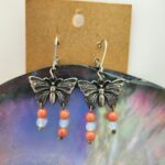 Des magnifiques boucles d’oreilles avec des jolies papillons et des perles en Calcite et Opalite (verre opaline fabriqué)