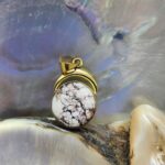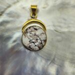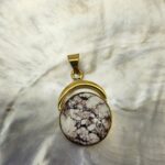 Pendentif en jaspe cheval sauvage en forme de cercle, délicatement serti en laiton haute polissage de couleur OR. Longueur total avec la boucle est environ 3.8 cm